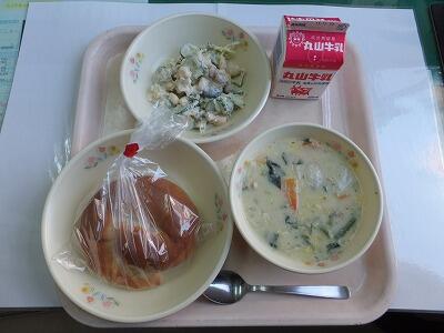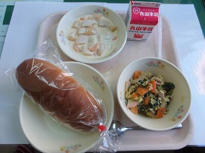米粉パン・かぶと白菜のクリーム煮・まめまめサラダ・牛乳
