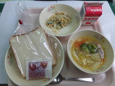 マヨネーズパン・マカロニシチュー・ひじきのサラダ・牛乳