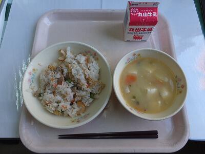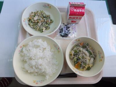 1月24日は学校給食記念日です。日本の学校給食は、明治22年山形県鶴岡町の忠愛小学校でお弁当を持ってこられない子どもたちのために出されたのが始まりです。その時の給食は、おにぎり・焼き魚・漬物だったそうです。その後、各地に給食は広まりました。昭和に入って第2次世界大戦という戦争で給食は中断してしまいました。昭和20年、戦争は終わりましたが食糧不足は続いており、子どもたちは食べるものがありません。外国からの援助物資で、昭和21年に東京・神奈川・千葉で学校給食が開始されました。これを記念して設けられたのが給食記念日です。明治時代の給食は、おにぎり、焼き魚、漬物という献立でした。給食記念日には、食べ物のこと、食べ物を作っている生産者や給食センターの方のことを考えて、一人一人が食べ物を大切にする気持ちをもちましょう。