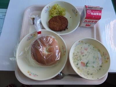 コロッケバーガー・クラムチャウダー・牛乳