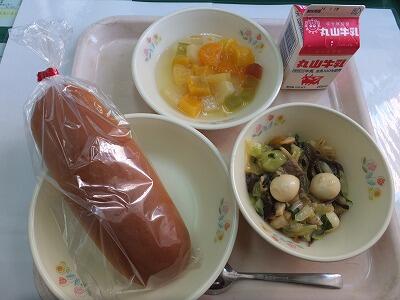 ミルクパン・魚の変わり揚げ・ボイルキャベツ・冬野菜のコトコト煮