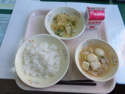 今日のじゃがいもは、北海道産のじゃがいもです。北海道は、じゃがいもの産地で、大量に安いじゃがいもが手に入ります。小学校の給食費は1食215円、中学校は255円、ご飯やパン、牛乳代を差し引くと、おかず代として使えるのは、小学校150円、中学校195円程度です。安心安全で安い食材を使い、栄養バランスのとれた給食を作るのは大変ですが、お家の方が出してくださる給食費を有効に使って、健康によい食事を作ります。皆さんは、給食献立の組み合わせを参考に自分の食生活改善に役立てましょう。
