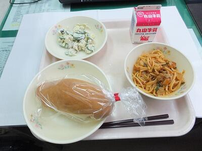 減量パン・スパゲティペスカトーレ・豆まめサラダ・牛乳