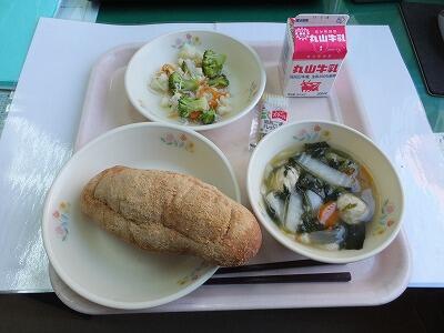 揚げパン・白菜と肉団子のスープ・温野菜サラダ・牛乳