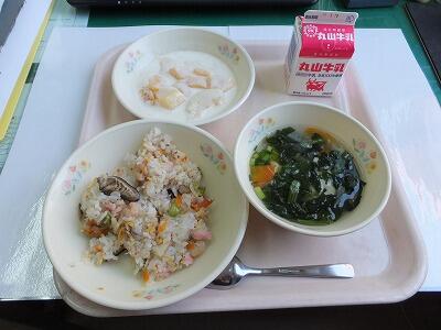 麦ごはん・しそ味ひじき・里芋のカレー煮・若竹汁・牛乳