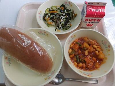 ミルクパン・ポークビーンズ・海藻サラダ・牛乳