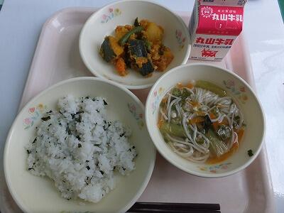 わかめご飯・かぼちゃのそぼろ煮・七夕汁・牛乳