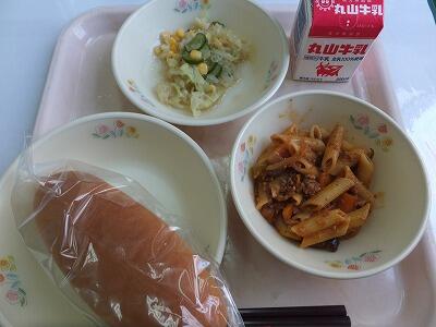 減量コッペパン・ペンネポロネーゼ・スタミナサラダ・牛乳