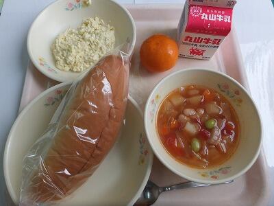 セルフサンド・白インゲンのトマトスープ・果物・牛乳