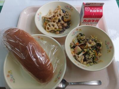 米粉パン・スィートポテトシチュー・豆々サラダ・牛乳