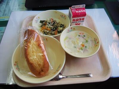 今日の汁物は「道産子汁」、道産子というのは、「北海道で生まれたもの」を意味する言葉です。「道産子汁」には北海道特産の鮭、じゃがいも、とうもろこし、バターが入っています。北海道は、広大な土地で、野菜や豆が作られ、酪農も盛んで、周りの海ではおいしい魚もとれ、自然の恵み豊かなところです。しかし、今年は、台風が北海道に上陸し、農作物がとれず、日本中に影響を及ぼしました。
