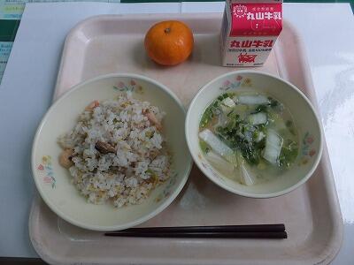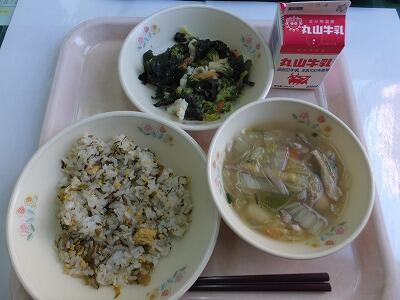 高菜飯・団子汁・へべ酢味噌和え・牛乳