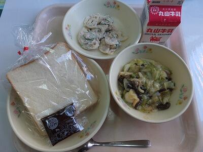 食パン・チョコマーガリン・八宝菜・れんこんサラダ・牛乳