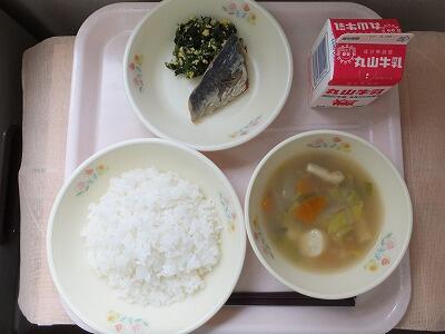《今日の献立》麦ご飯・西京焼き・菜の花の辛子和え・団子汁・牛乳
