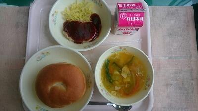 《今日の献立》ハンバーガー・野菜のカラフルスープ・牛乳