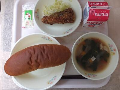 《今日の献立》ミルクパン・魚のフライタルタルソースかけ・ボイルキャベツ・ミネストローネ・牛乳