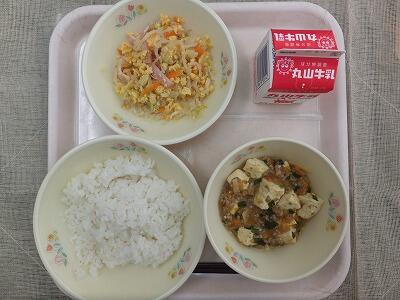 《今日の献立》麦ご飯・麻婆豆腐・中華サラダ・牛乳