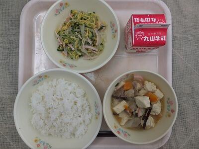 《今日の献立》麦ご飯・豆腐の中華煮・パンサンスー・牛乳