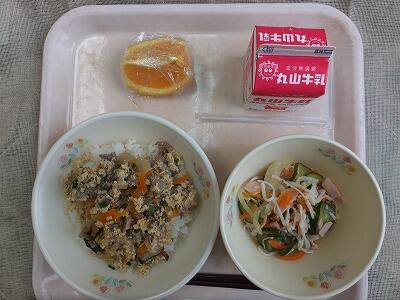 《今日の献立》冷や汁・五目豆・冷凍みかん・牛乳