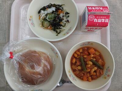 《今日の献立》米粉パン・ポークビーンズ・海藻サラダ・牛乳