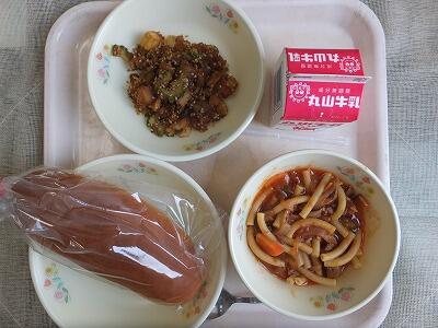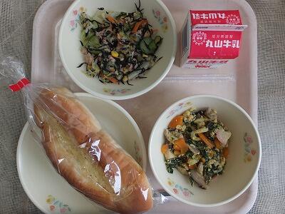 《今日の献立》マヨネーズパン・卵とじ・ひじきのサラダ・牛乳