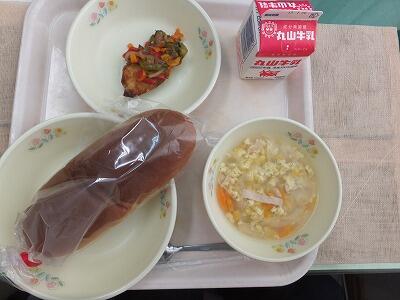 《今日の献立》黒糖パン・魚のエスカベーシュ・コーンスープ・牛乳