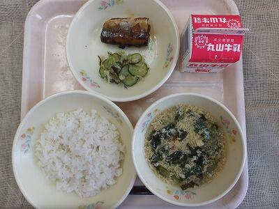 《今日の献立》麦ご飯・さんまかぼすレモン煮・即席漬け・チンゲンサイのかき玉汁・牛乳
