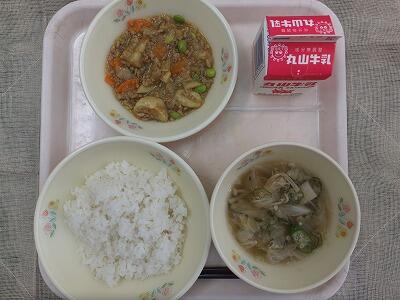中国は、医と食の源は同じという「医食同源」の国です。私たちも、日頃からバランスのとれた食事をとることで病気を予防していきましょう。今日の給食は、豆腐と豚肉を使った中華料理・厚揚げの中華煮と野菜の和え物を組み合わせています。バランスのとれた食事には組み合わせがとても大切です。ご飯等の主食と、魚・肉・豆腐・卵等のおかず:主菜、野菜のおかず:副菜を組み合わせて食べるようにしましょう。