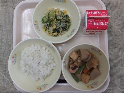 《今日の献立》冷汁・五目豆・冷凍みかん・牛乳