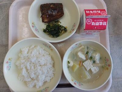 【今日の献立】麦ご飯・さばのたった揚げ・ほうれん草と沢庵のごま和え・味噌汁・牛乳