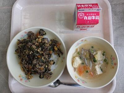【今日の献立】 ビビンバ・ごまキムチ汁・牛乳