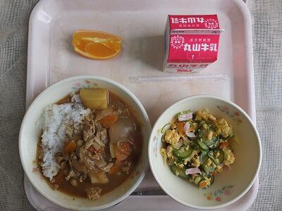 【今日の献立】カレーライス・たまごサラダ・ネーブル・牛乳