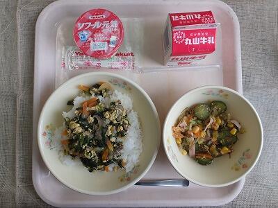 【今日の献立】麦ご飯・切干大根の牛乳煮・へべすみそ和え・牛乳