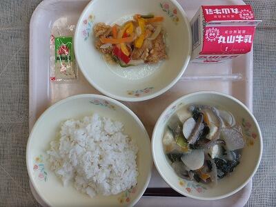 根菜とは、土の下に出来る野菜のことです。今日の給食・根菜の煮物には、大根、にんじん、ごぼう、レンコンが入っています。よくかまないとのみ込めないので、かむ力が強くなります。食物繊維が多いので、お腹の調子も良くなります。根菜が苦手な人も多いようですが、進んで食べるようにしましょう。