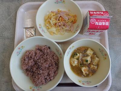 【今日の献立】赤飯・麻婆豆腐・中華サラダ・牛乳