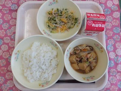 【献立一口メモ】学校給食では、野菜がたくさん出てきます。肉や魚より量が多いと感じるかもしれませんが、その位食べなければ健康は保てません。そして、家庭でも、野菜を意識して食べるようにしましょう。給食の汁物は、煮干しや昆布、かつお節、鶏ガラや豚骨でだしをとっています。皆さんは、今、味を感じる舌が発育しているところなので、本物の味を知ることが大事です。給食では、天然の素材を使って出汁やスープをとっています。旨味成分を取り出して作られた出汁の素に比べて、味が薄いと感じるかも知れませんが、薄味に慣れ、本物の出汁の味を覚えてください。