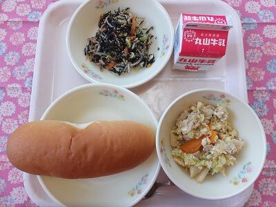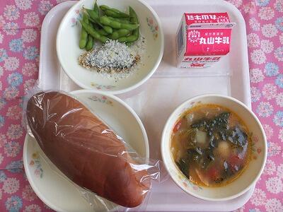 【献立】ミルクパン・炒り豆腐・枝豆サラダ・牛乳