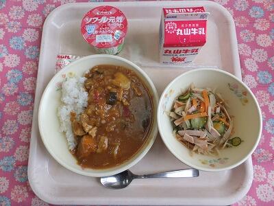 【献立】夏野菜のカレー・カミカミサラダ・ヨーグルト・牛乳