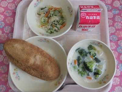 【献立】揚げパン・野菜のクリームスープ・チキンサラダ・牛乳
