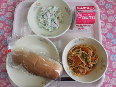 【献立】減量パン・スパゲティミートソース・カッテージサラダ・牛乳