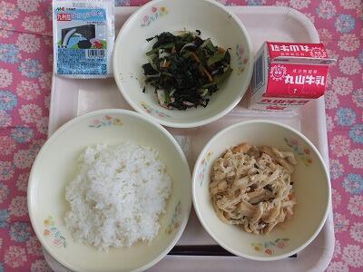 【献立一口メモ】今日から18日(月曜日)まで1週間、給食の食べ残しを調べます。給食は皆さんにとって必要な栄養量を満たすように計算されています。食べ残したり人にあげたりすると必要な栄養量がとれなくなってしまいます。どうしても食べられなくて少し減らしている人は、少しずつ皆の量に近づくようにしましょう。また、おかわりのし過ぎもよくありません。自分に必要な量を知って、好き嫌いなく食べることが大事です。