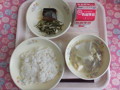 【献立】麦ご飯・鯖生姜煮・昆布和え・豆豚汁・牛乳