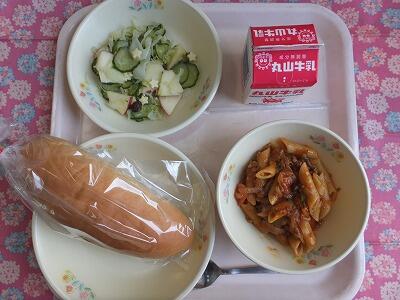 【献立】減量パン・ペンネポロネーゼ・日向夏風味サラダ・牛乳