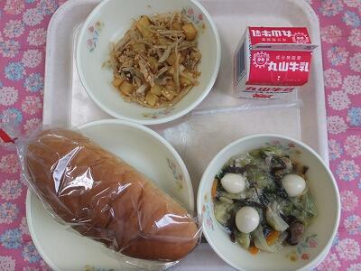 【献立】ミルクパン・八宝菜・ナッツごぼう・牛乳