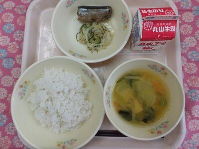 【献立】麦ご飯・さんまの生姜煮・昆布和え・ごった汁・牛乳