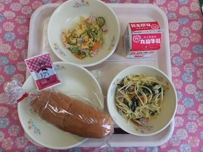 【献立】ミルクパン・炒り豆腐・かぼちゃのサラダ・牛乳