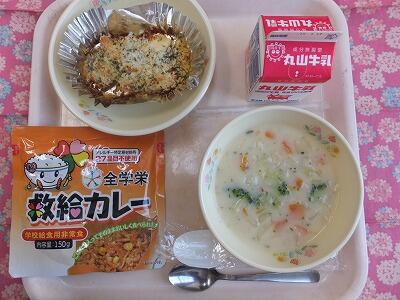 【献立】救給カレー・香草パン粉焼き・クラムチャウダー・牛乳