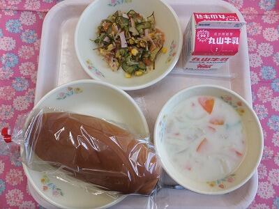 【献立】マヨネーズパン・肉と野菜のカレー煮込み・海藻サラダ・牛乳