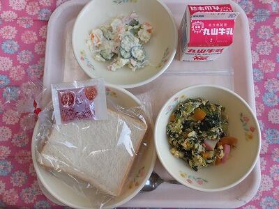 【献立】食パン・いちごジャム・卵とじ・ポテトサラダ・牛乳