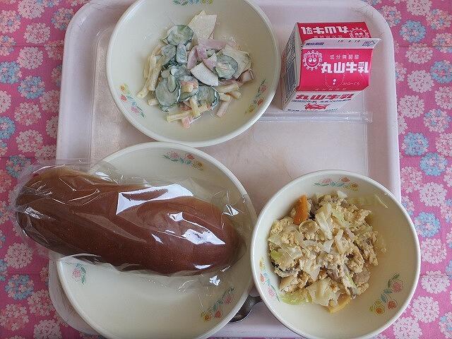 【献立】黒糖パン・煎り豆腐・マカロニサラダ・牛乳